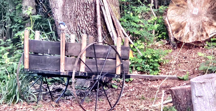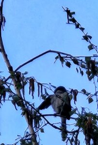 A jay preens himself as an inconstant breeze stirs the willows.