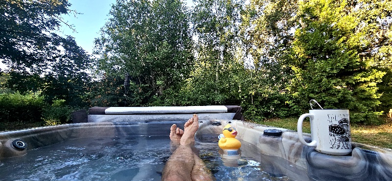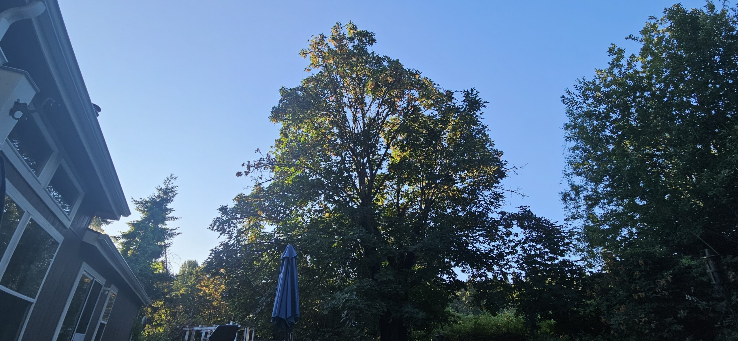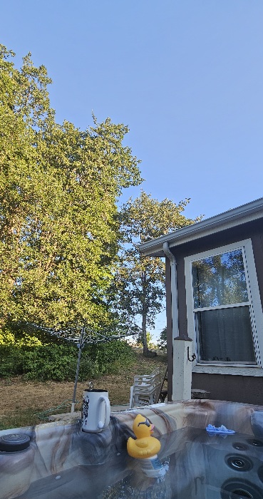 7/11/25 6:30 59f (15c) with a high of 90f (32.2c) forecast for later today. Currently calm, clear and quiet, the sun just cresting the ridge.
