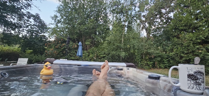 I was reaching to turn off the pumps so I could listen to the quiet when I knocked my tea into the tub. I had to get out, get a new mug and heat some more water, this time adding a little honey and a squirt of lemon juice.