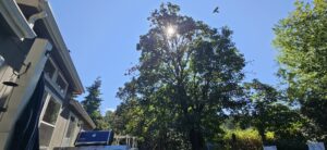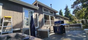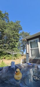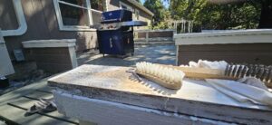 I think I have most of the loose paint off of the section at the sliding door. If it’s not too hot when I get out, I can sweep and paint that.