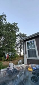 I hear lots of truck traffic.  Ladders are banging  in the orchard across the street. Walter is barking at the crew as they start down the rows.