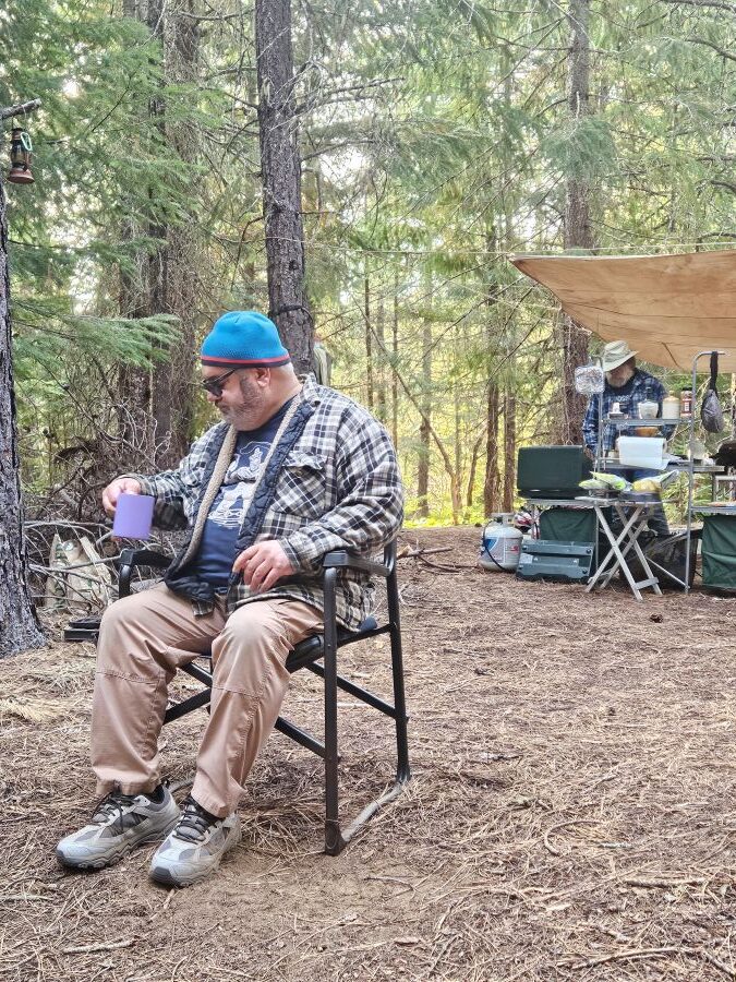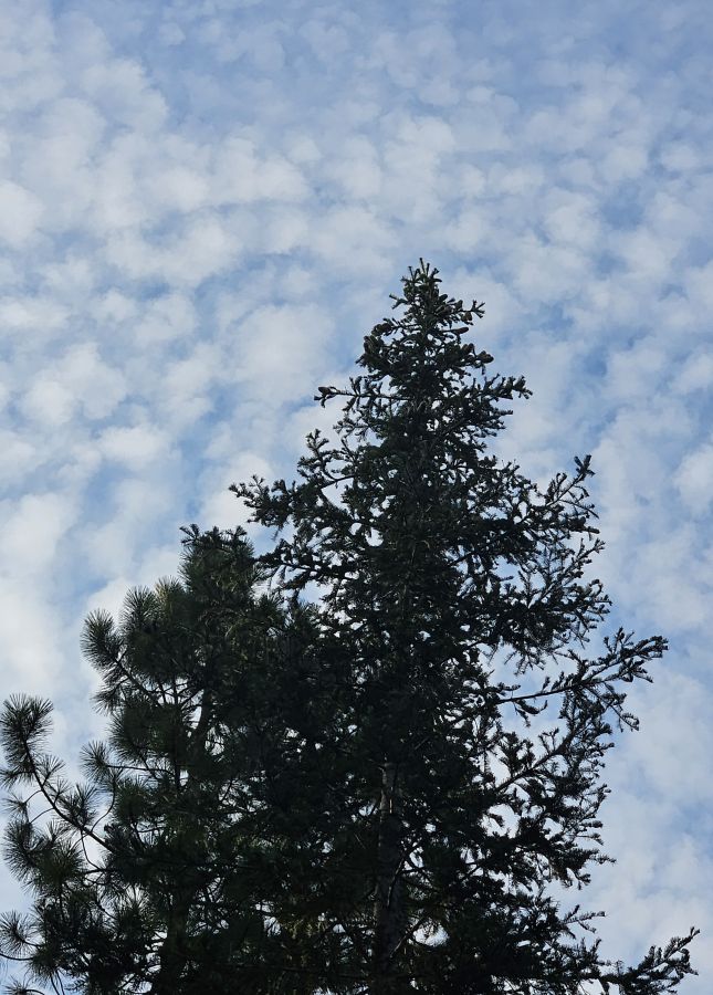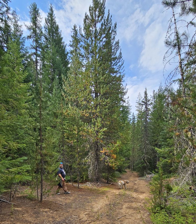 8/24/25 7:00 52f (11.11c) Blue sky with light broken clouds. We went for a short walk involving some bushwhacking this morning, after caffeinating ourselves.