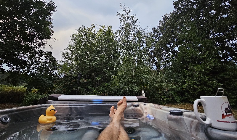 8/27/25 6:30 68f (20c) Cloudy with light rain just starting.