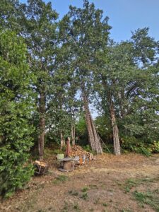 Sprayers whine in the distance. The dog is baying and the rooster is crowing.