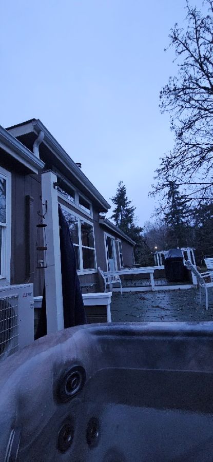Everything is encased in ice. Haze from morning fires has settled in the firs. A freezing mist is transitioning to light rain. Snow is forecast.