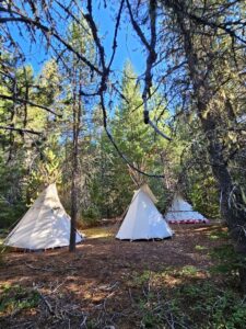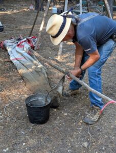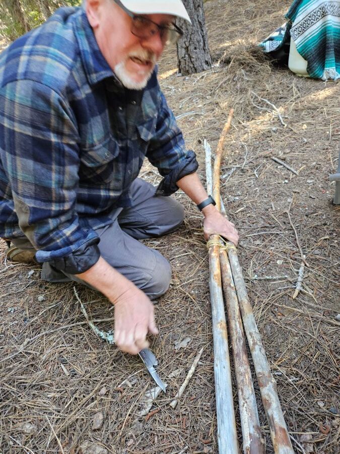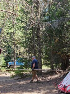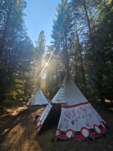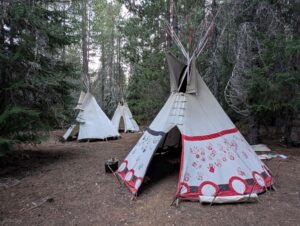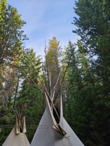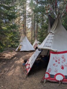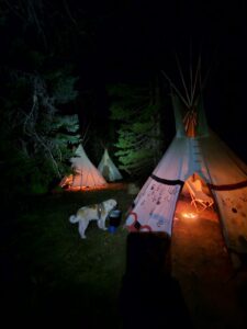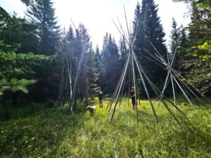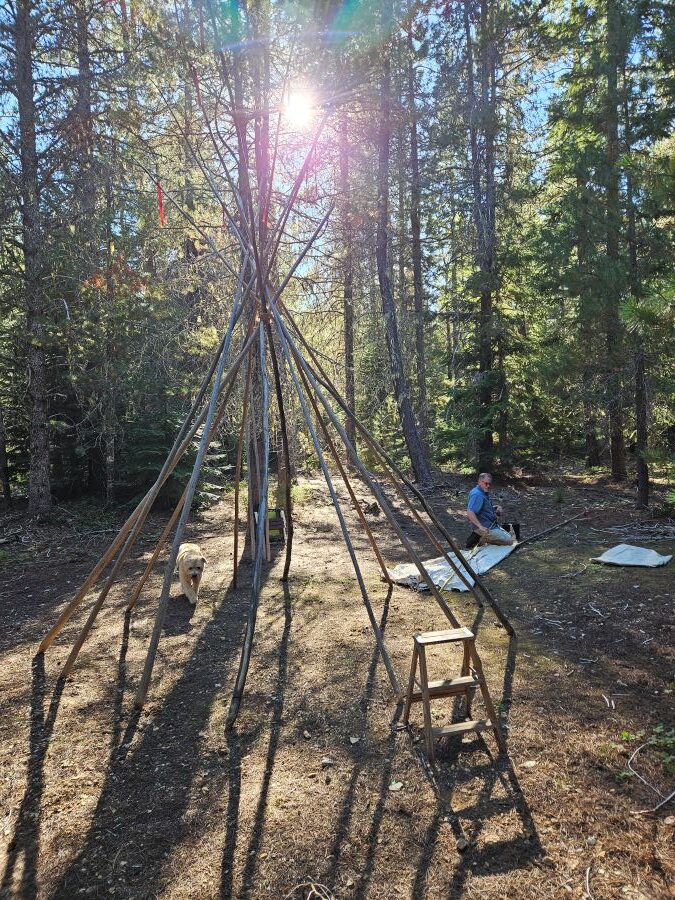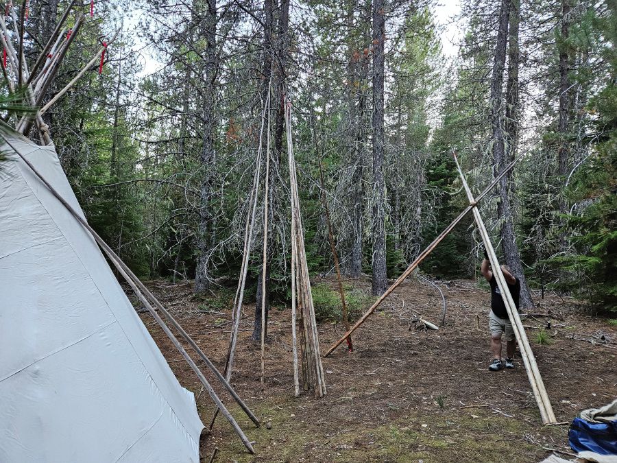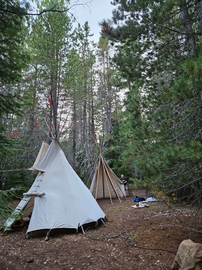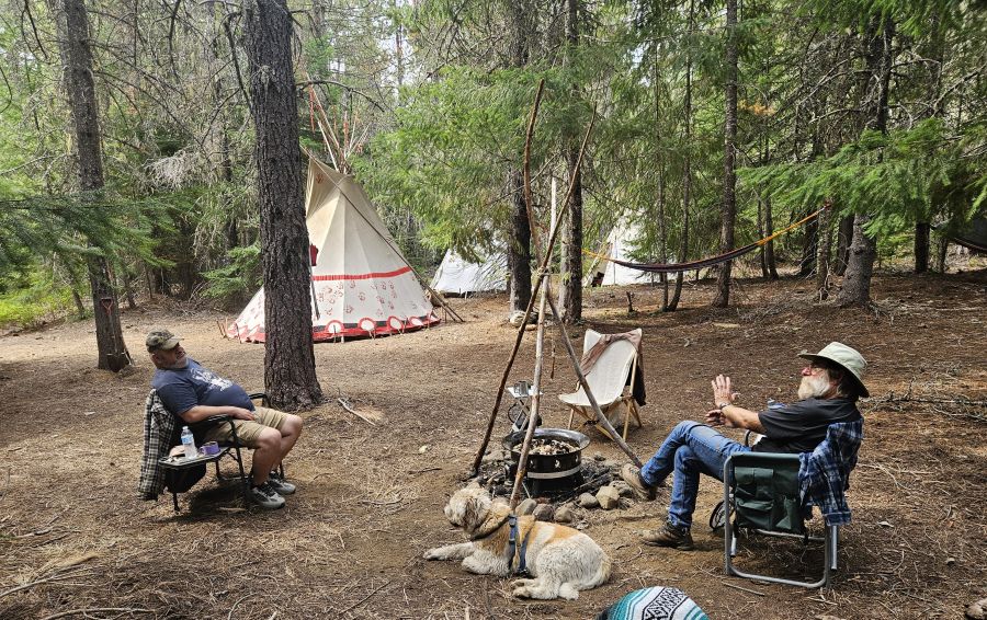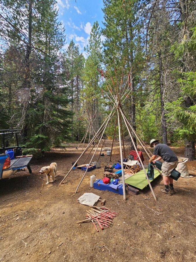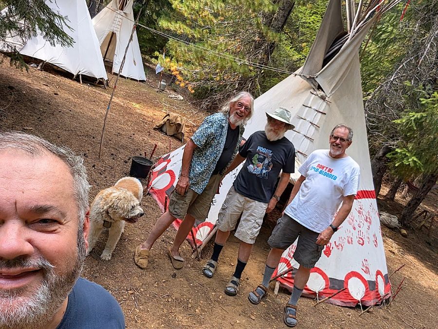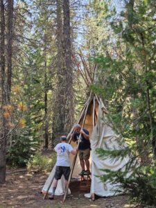 I was resting in the shade when Andy showed up a little later, just in time to help me set up our tipis. We put them up side by side, facing east. Andy’s lodge had a large gap around the bottom. We should have taken it down and tied the poles a little lower, but it was hot and likely to stay that way over the next several days, so we didn’t bother.
