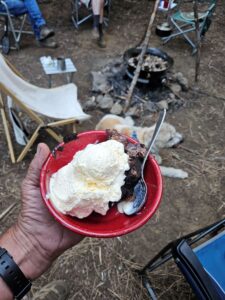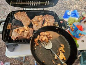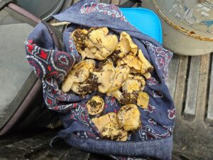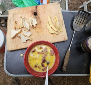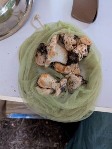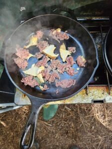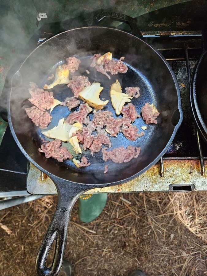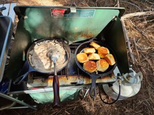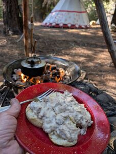 Friday morning we broke our fast with biscuits and wild mushroom gravy made from chanterelles I’d collected the day before on my way to camp.