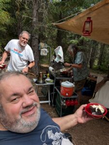 Back at home, I had a soak in the hot tub before I picked up brother Dave. We stopped at the store to purchase birthday cake, more ice cream and some dry ice, before driving up to camp. We also did a little foraging on our way in and found both white and yellow chanterelles.