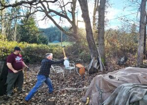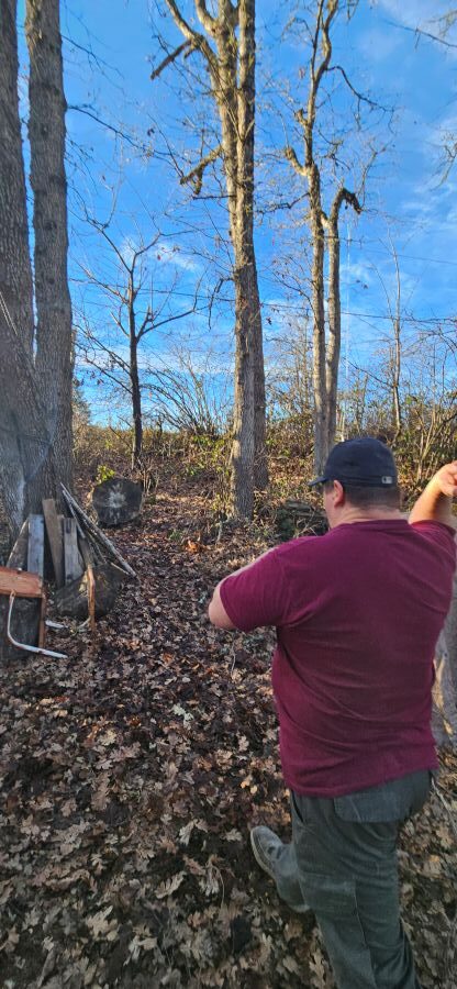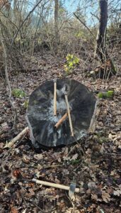 Cliff and Donovan came over yesterday and helped me set up a throwing axe target in the back yard.
