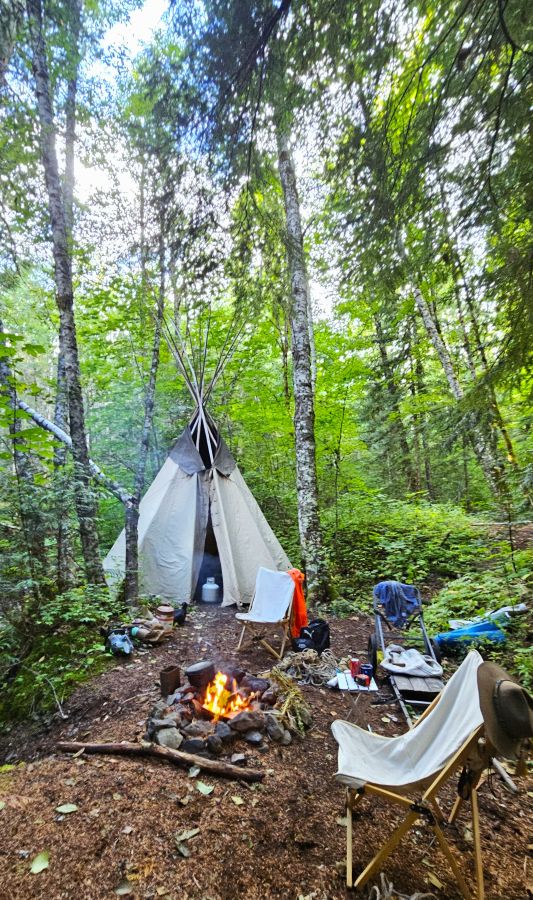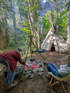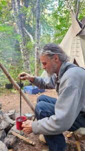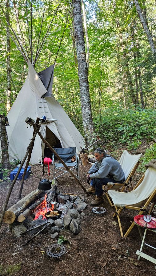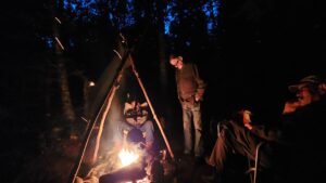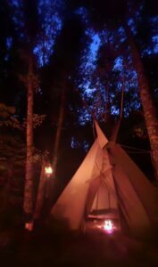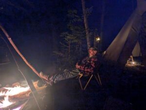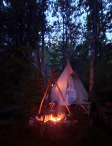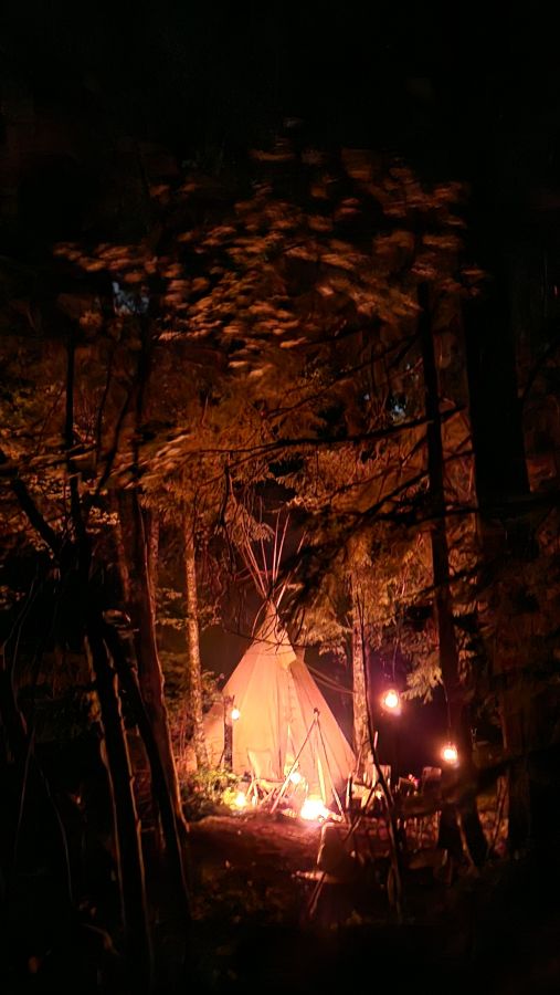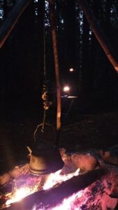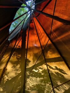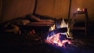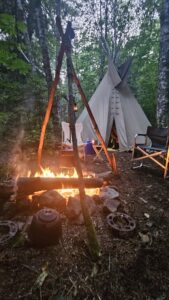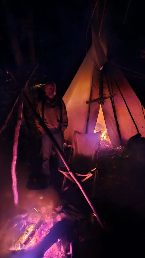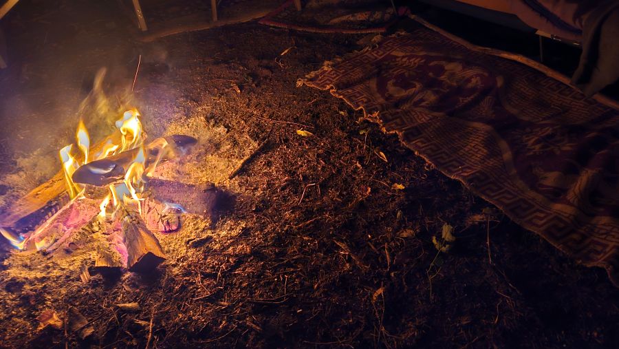 We stayed up drinking and talking. Eventually we put out the lamps and brought the fire inside the tipi. The day was done.