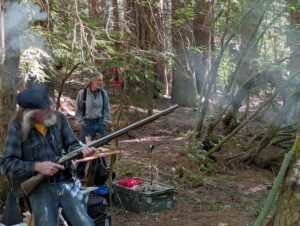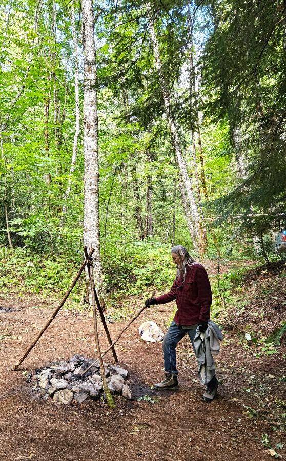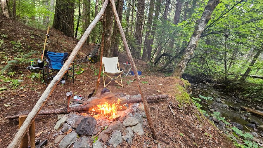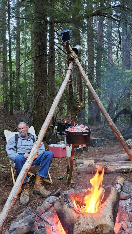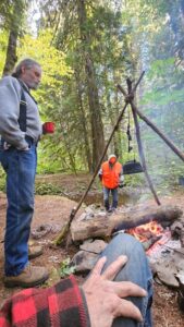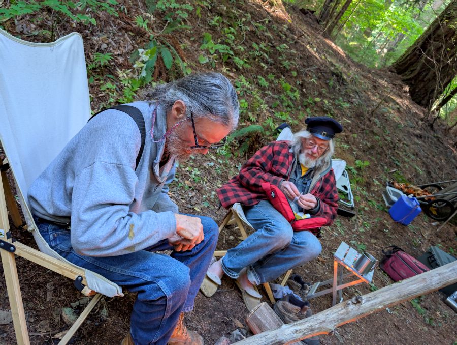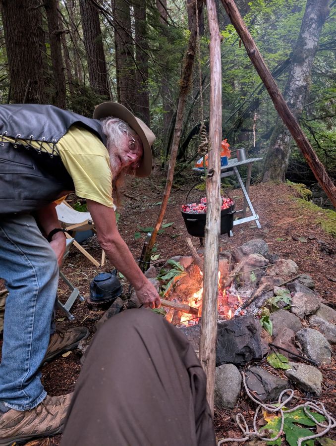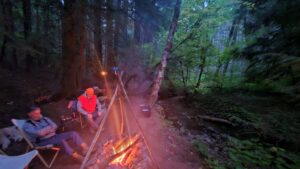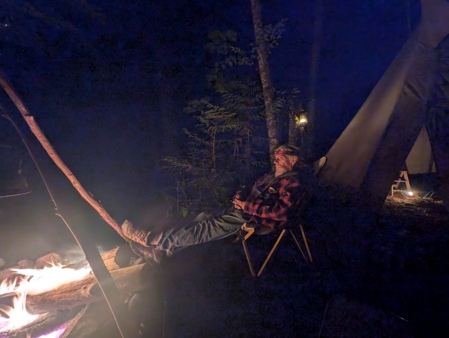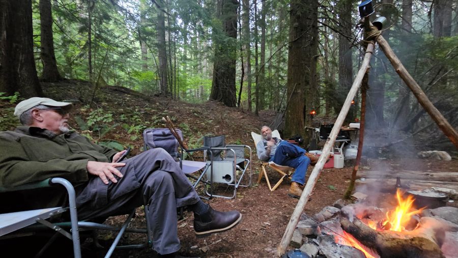 Mike and Bruce showed up later in the day. We sat around the fire chatting while Robert practiced with his slingshot.