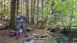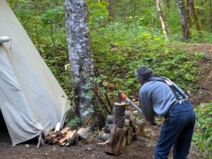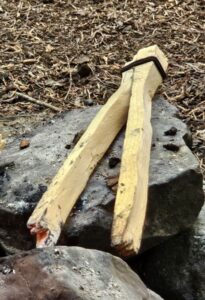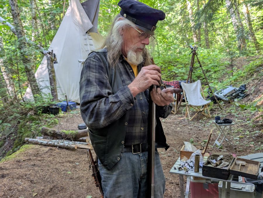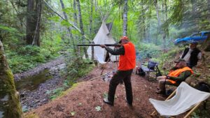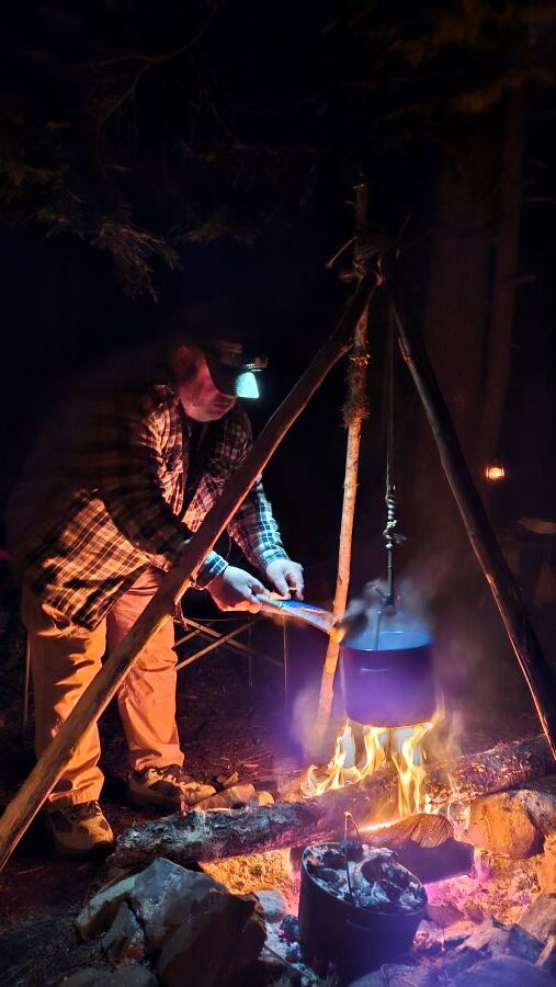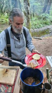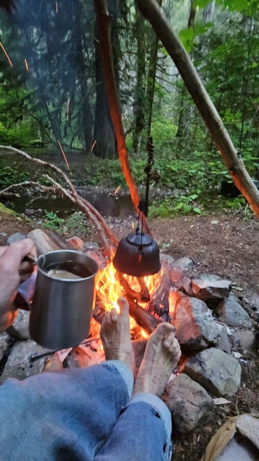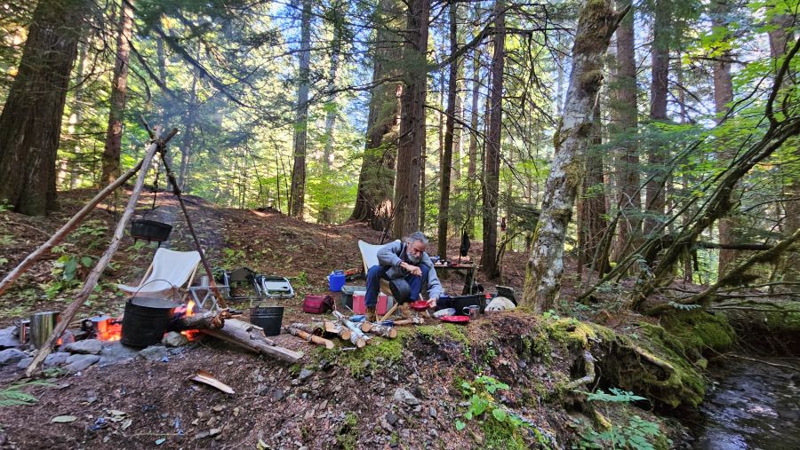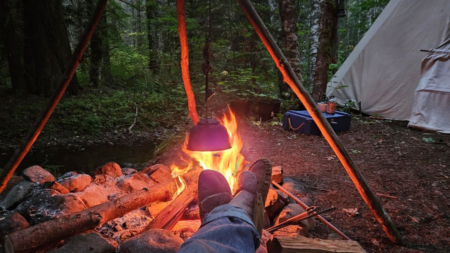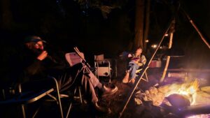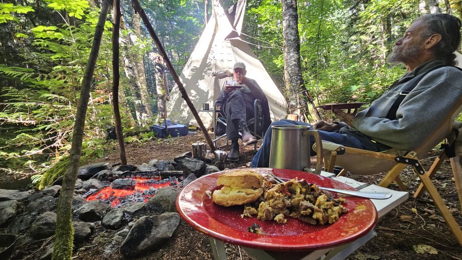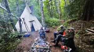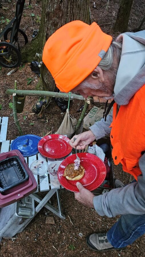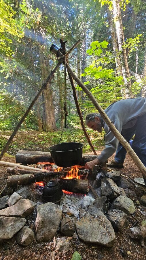 Mike and Bruce showed up later in the day. We sat around the fire chatting while Robert practiced with his slingshot.