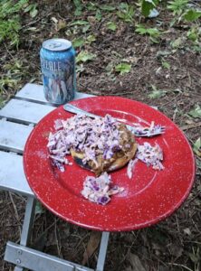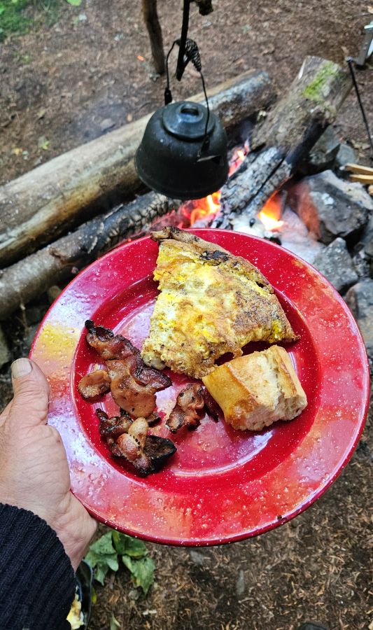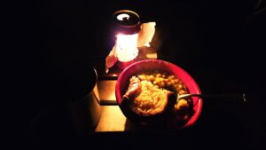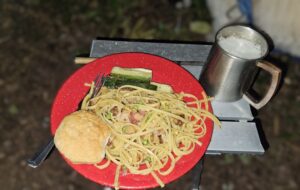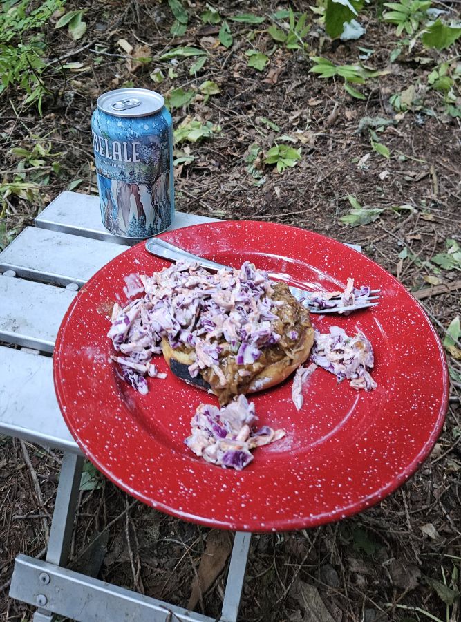 We heated garlic bread in the Dutch oven, popped a beer and waited for Jason to arrive. He got there as the light leaked out of the day and we had hot soup from the thermos and bread fresh from the oven for dinner.