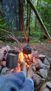 It was a cold morning Sunday, and still dark when I got up to have a bounce on the latrine rail. My next priority was to get a fire started.