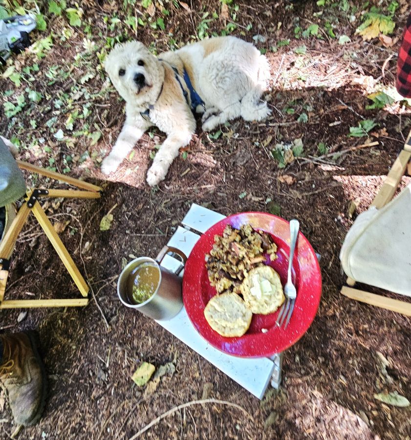 Mike and I headed north, in search of someplace we had not camped before. Eventually we settled on this little dead end spur on Cabbage Creek. It didn’t resemble Bruce’s meadow not the description nor the directions, but it was idyllic.