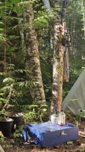 Bladder empty, I had finally drifted off into a deep and dreamless slumber when I was rudely awakened by something cold, damp and slimy landing on my cheek. I sat bolt upright and slapped it across the tipi. It was a frog! I tried to get its picture but the little bastard hopped under Robert’s cot.