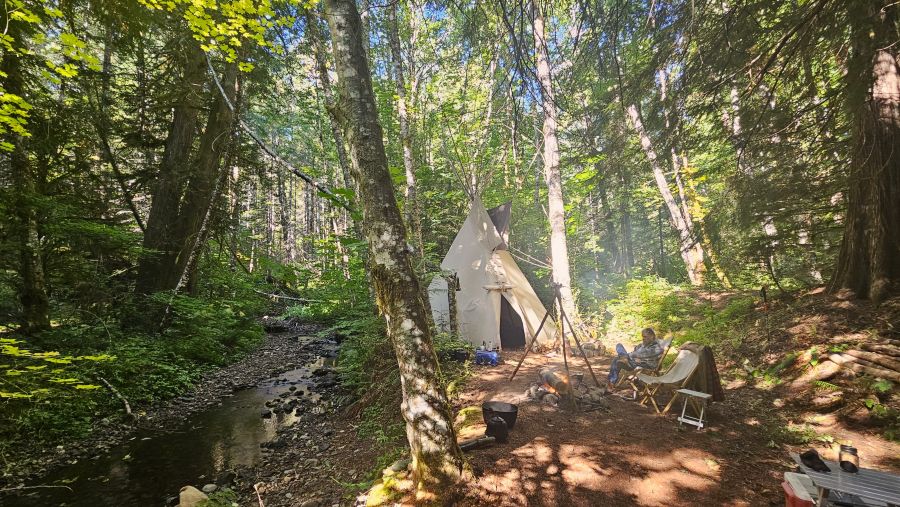 It put us right on the creek. There was an old fire ring and an open flat place almost large enough for the tipi.