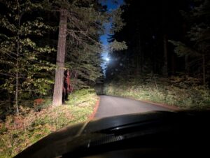 Andy had to go home Monday night. The full moon illuminated his drive through the deep, dark forest.